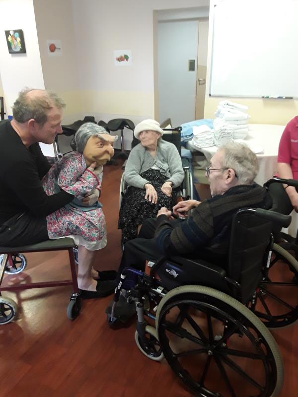 La semaine de la marionnette débute aujourd'hui, par la rencontre de Lucie, une vieille dame, au cheveux gris et une seule dent, venue passer du bon temps avec les résidents autour d'un goûter.